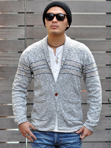 ショールカラーで胸に、ラインが入ったデザインで