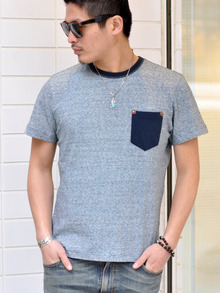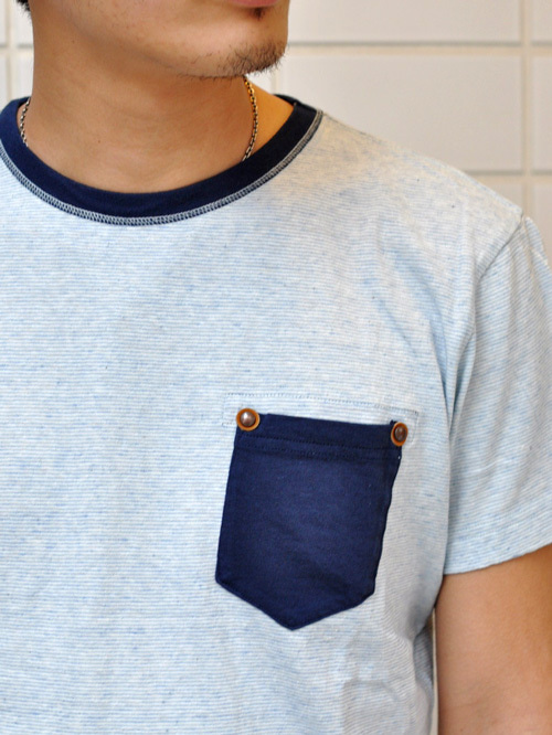 インディゴ染めされた糸を使ったリンガーTシャツ