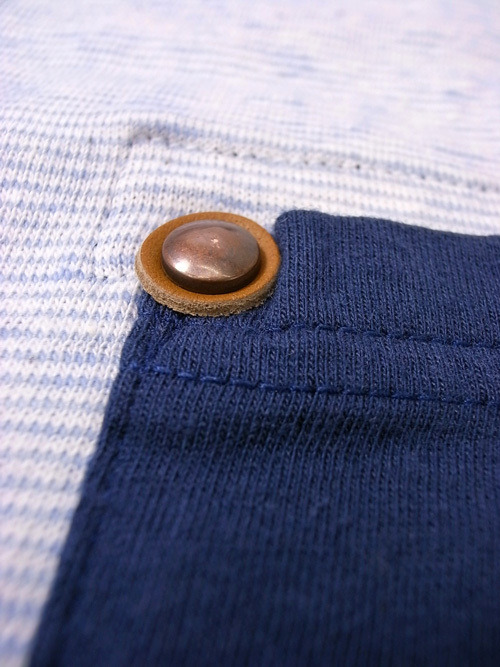首のリブとポケットもインディゴ染めで染めて