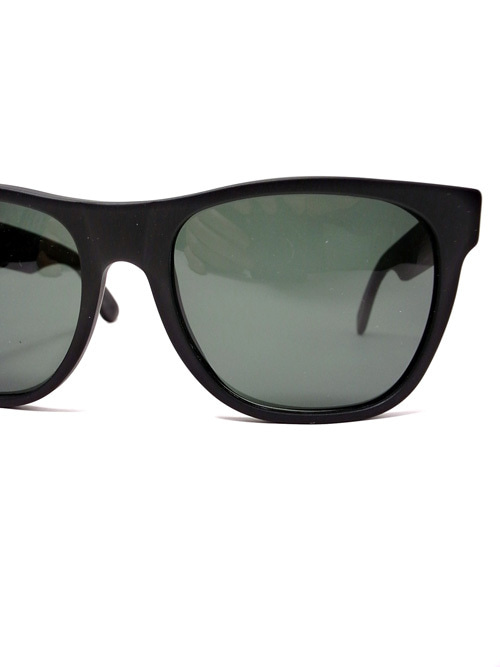 マットなブラックフレームに濃いめのレンズが入っています。