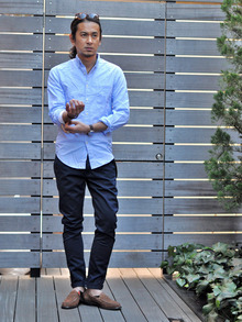 タイトめのパンツに、Vネックやヘンリーで合わせても良いかと思います。
