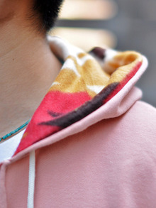 フードの中は、こんな感じにインディアンブランケットを貼りつけています。