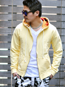 短パンにこんな明るいパーカーが