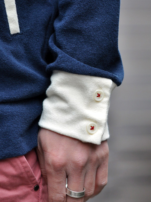ボタン付きの袖口は、左右で色が違い、チョッしたところがお洒落イカリ