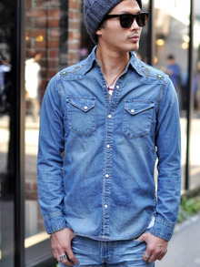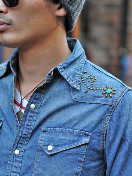 ETOFFE フラワースタッズデニムシャツ