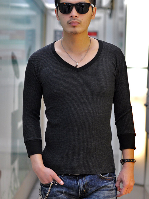 サーマルは薄手の物で、Vネックの7分袖のデザイン