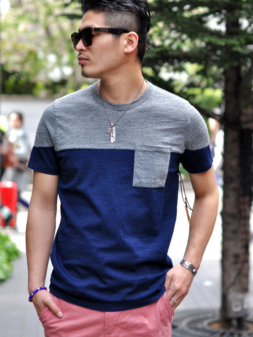 下の部分に、インディゴを使った杢の生地を使って
