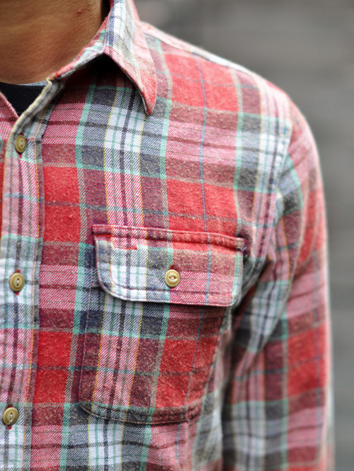 ヴィンテージのネルシャツのように、日焼けして毛玉のできる特殊な加工を施しています。