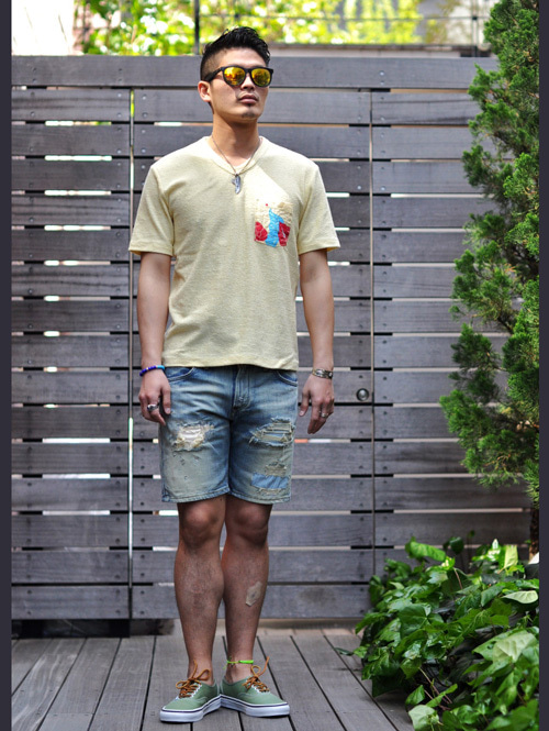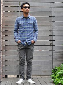 現地では、ショーツにチェックのネルシャツは定番スタイルです