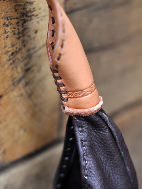 取っ手にも、ハンドステッチならではのナチュラルで優しい雰囲気が出ています。