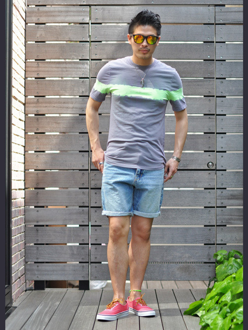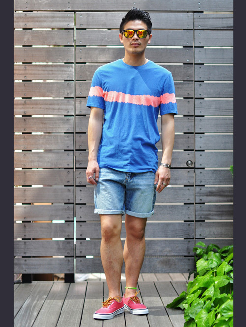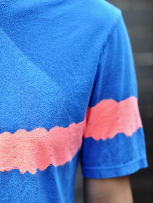 丁度胸のあたりに、袖までタイダイで蛍光色のラインが入っています。