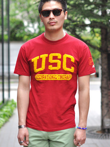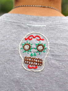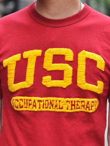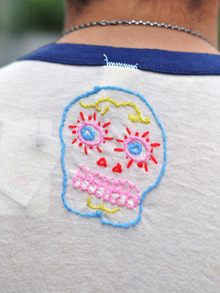 ヴィンテージTシャツに、ハンドステッチで、プリントされている部分に刺繍をほどこしています。