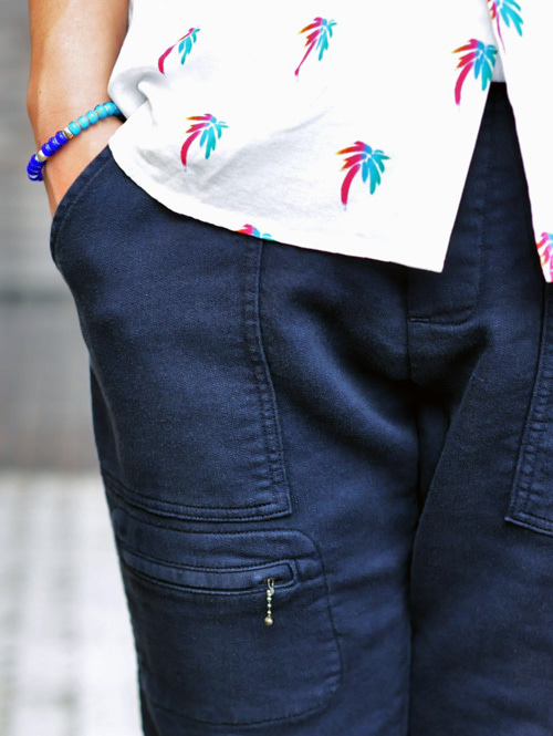 9分丈で、腰に紐が入って、アウトポケットが付いた