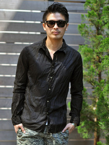 シワ加工が入っているので、ジャストに着られ綺麗なシルエットが楽しめます。