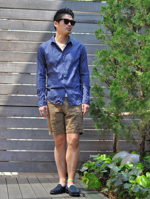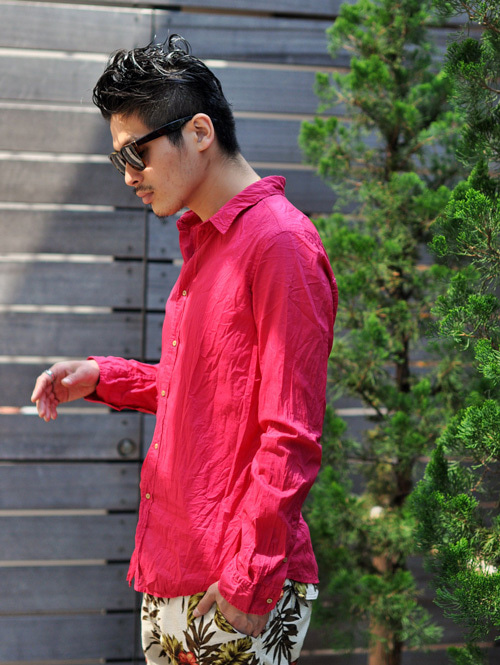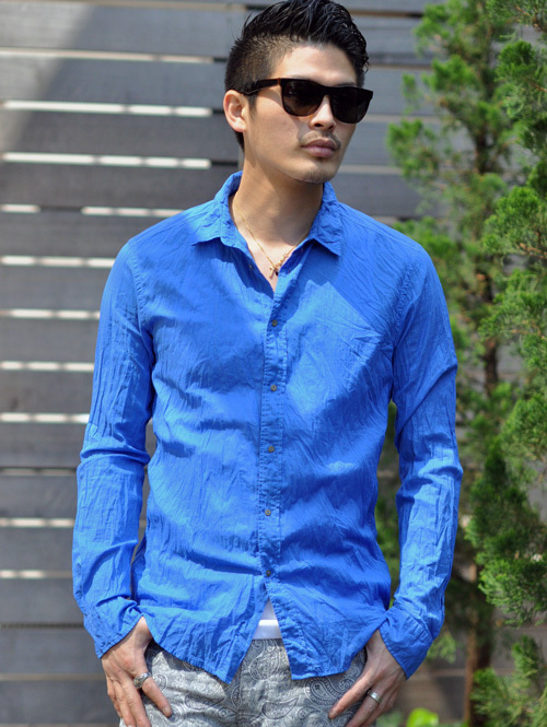 シワ加工が入っているので、ジャストに着られ綺麗なシルエットが楽しめます。