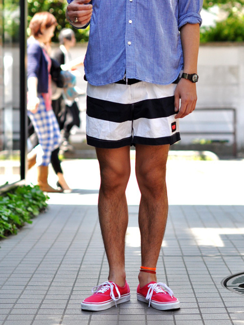 80年代にも良く見かけた、この太さのボーダーのデッキショーツですが
