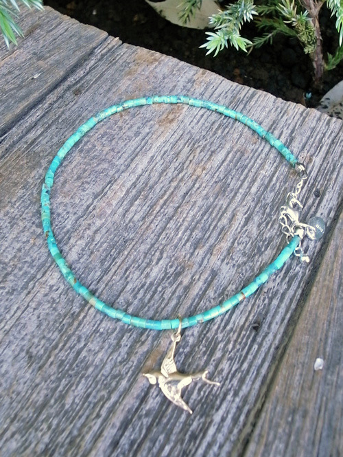 ターコイズのフラットビーズを使い