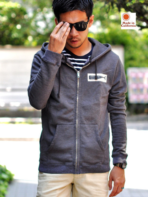 アメリカ物らしい裏起毛の、肌触り良いパーカーです。