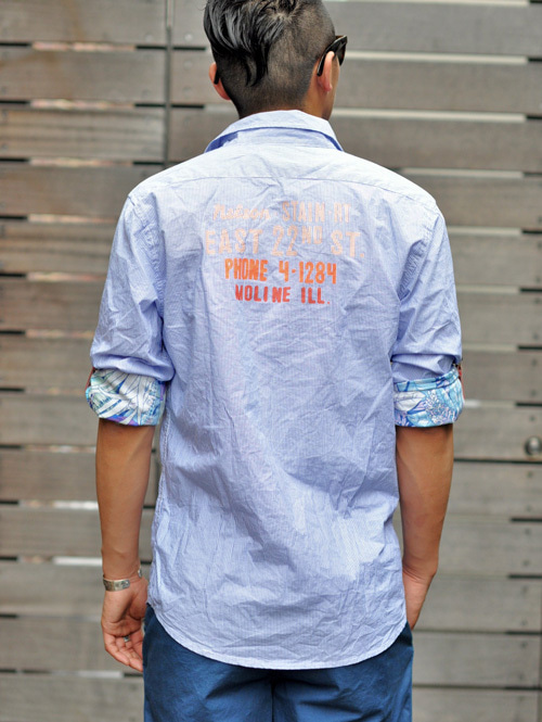 バックには、日焼けした様なカラーリングのプリントが入り爽やかにじ