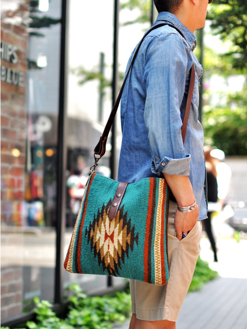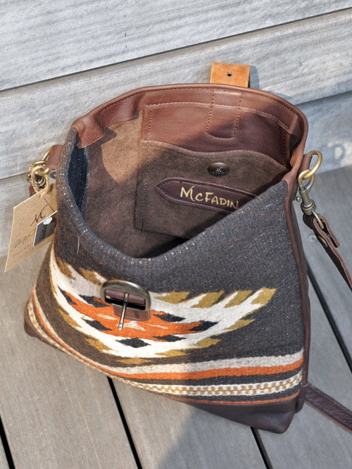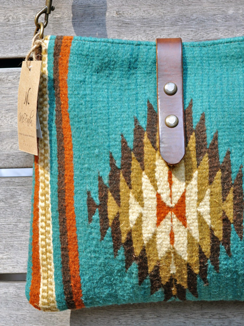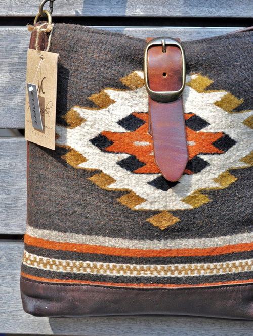 素材に、本物のインディアンラグと、レザーとヴィンテージのベルトを加工して使われています。