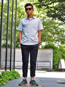 全体にカーキやベージュ、赤系のボトムならD BROWNの方が良いかも