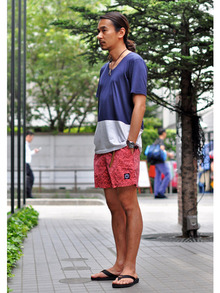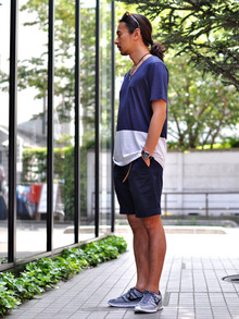 今年は多くのハイなブランドでも良く見かけるこの切り返しのTシャツですが