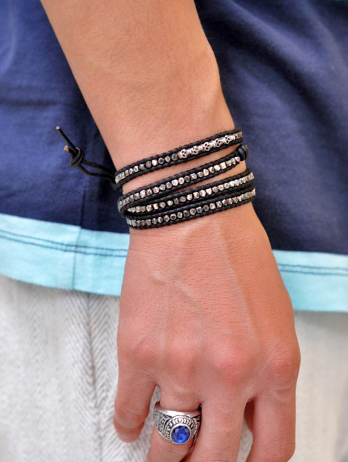 そしてもう一点は、ブラックレザーにシルバーのラップビーズが付いたタイプで