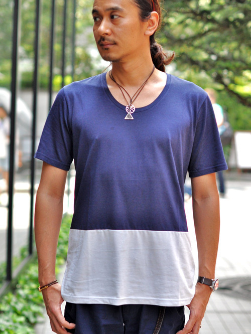 今年は多くのハイなブランドでも良く見かけるこの切り返しのTシャツですが