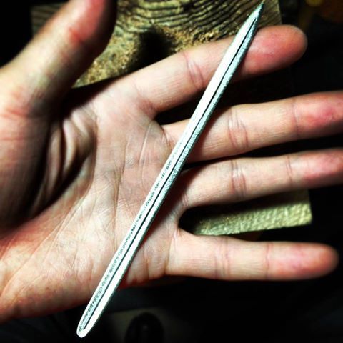 ラインをナイフで入れ曲げて作っていきます。