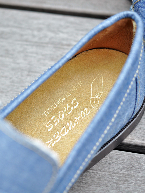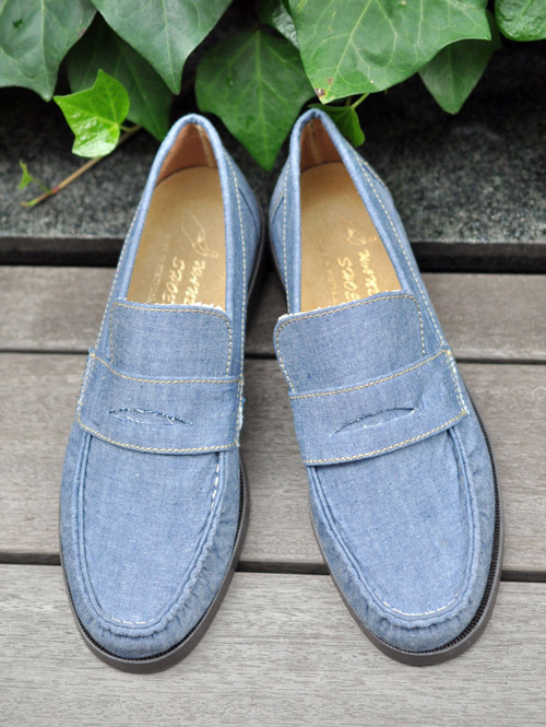 WANDER SHOESのシャンブレーの生地を使ったロ-ファーが入荷しました。