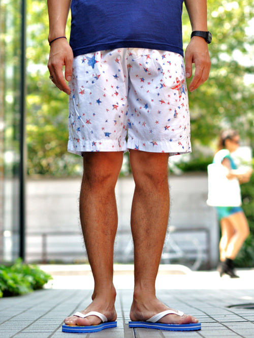 涼しいインド綿に、アメリカンフラッグ柄のスターがプリントされ