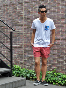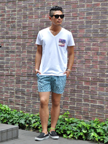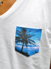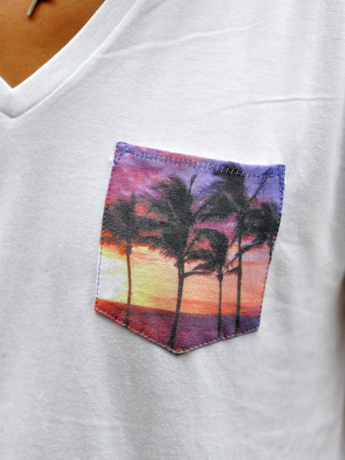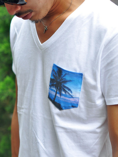 Vネックのボディーに、ハワイの夕景をプリントして、ポケティーの様に付けてみました。