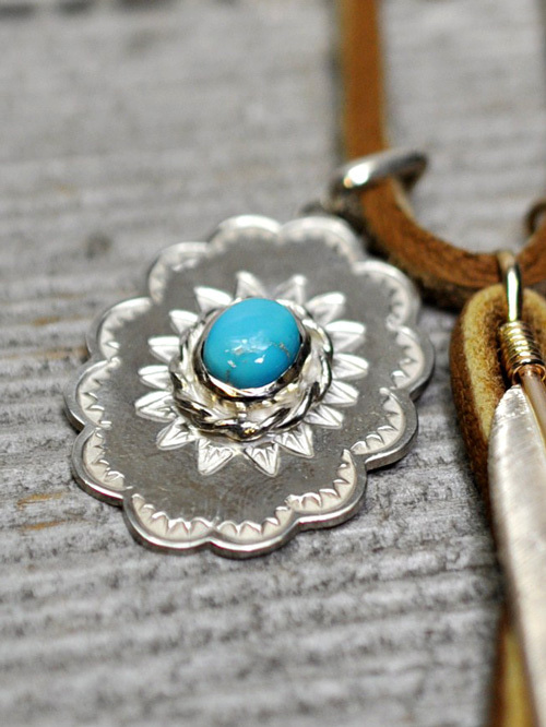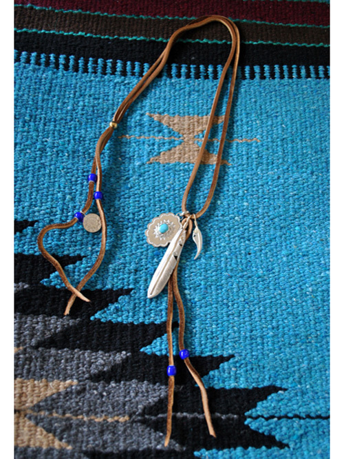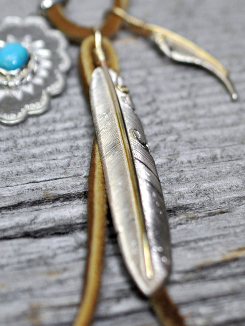 ディアースキンの紐で組んだフェザー2点とコンチョ一点のタイプ
