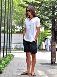 こんなアンティークなボードショーツにで、アダルトなサーフスタイルはいかがでしょう
