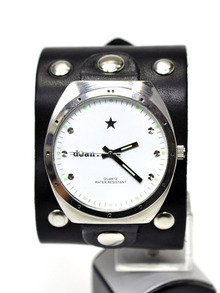 ブラックレザーに、ホワイトの時計が付きました。