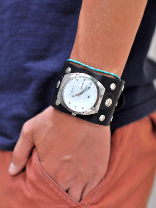 ブラックレザーに、ホワイトの時計が付きました。