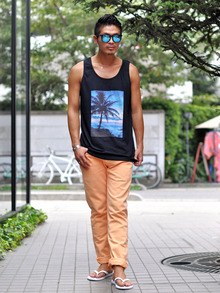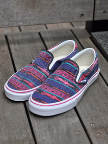 80年代に良く見かけた蛍光色を使ったトライバル柄のSLIP ON