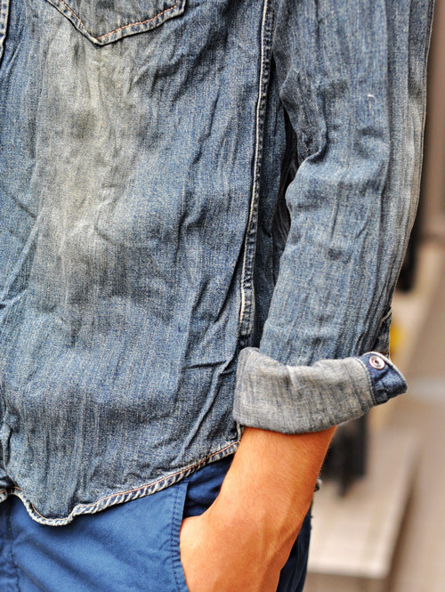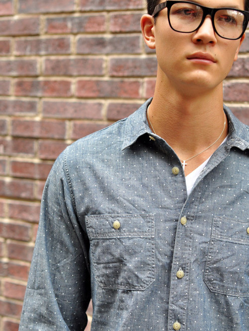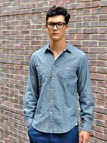 シャンブレー素材のワークシャツ
