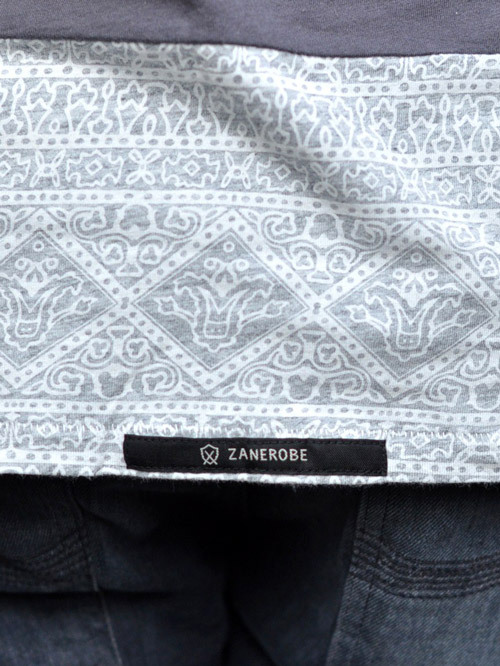 ホワイトとグレーそしてエスニックな柄がプリントされた生地が使われています。