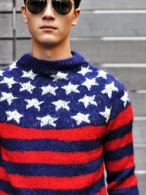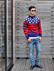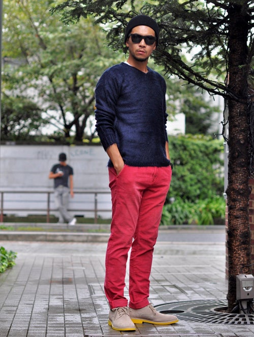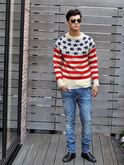 モデルの様にドロップタイプの眼鏡をかけると雰囲気抜群