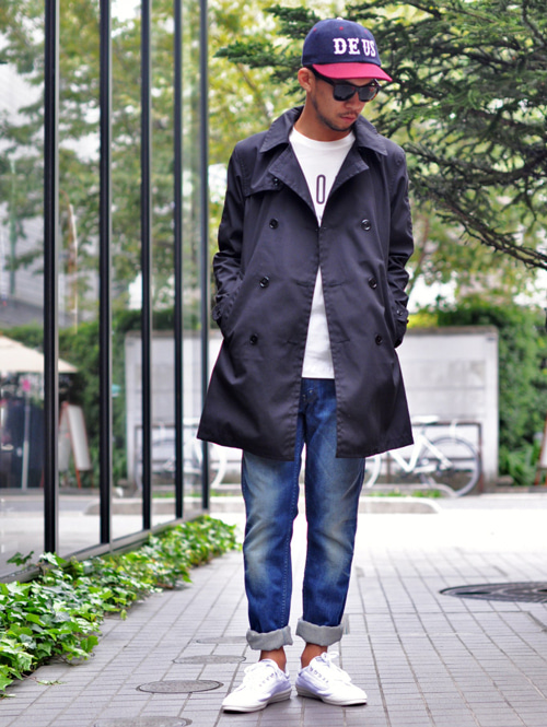 トップにはユーティーリティージャケットや、ナイロンなど異素材の物を合わせても良いかも