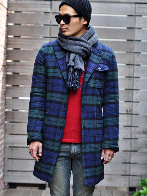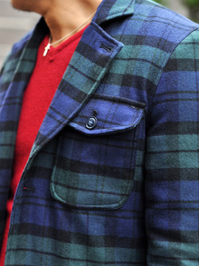 チェスターのデザインで、ブラックウォッチの生地で作られています。