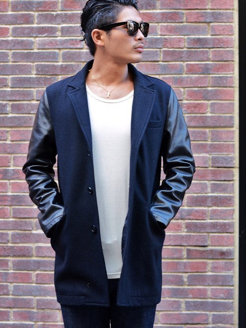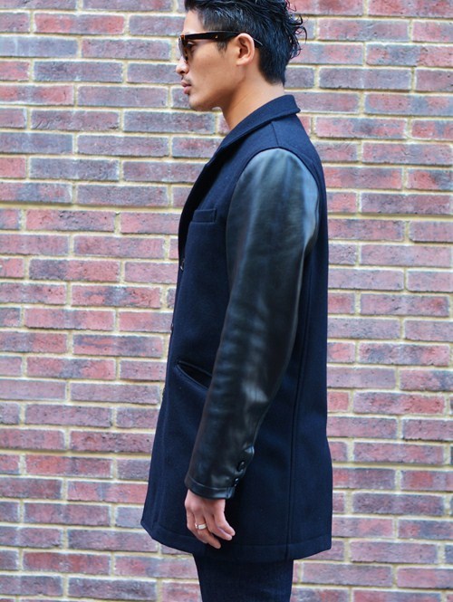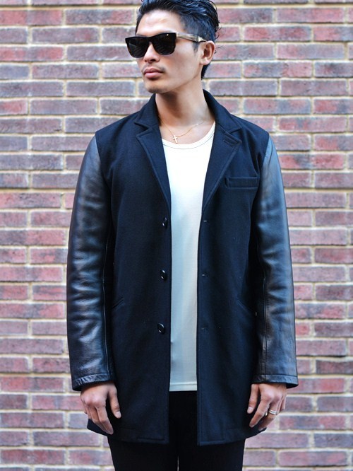 SERGEANT レザースリーブ チェスターコート