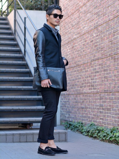ブラックブラックなので、モード色の強いスタイリングにピッタリ