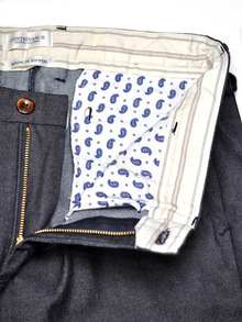 腰回りにややゆとりを持たせ、膝から下が綺麗にテイパードしたデザインで
