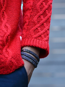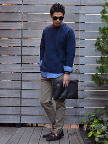 編み地も凹凸感のある物で、やはりポケットが効いたデザイン