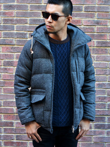 英国製のネップのツイードを表に使ったダウンで