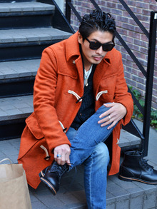 オリジナルのレザー袖のピーコート