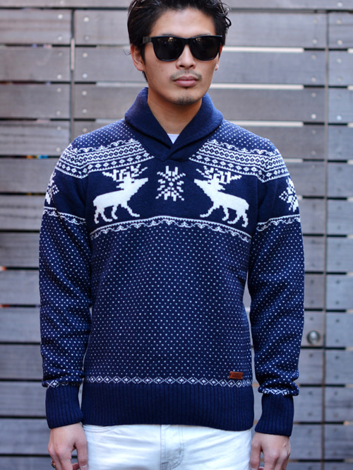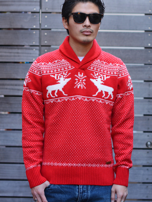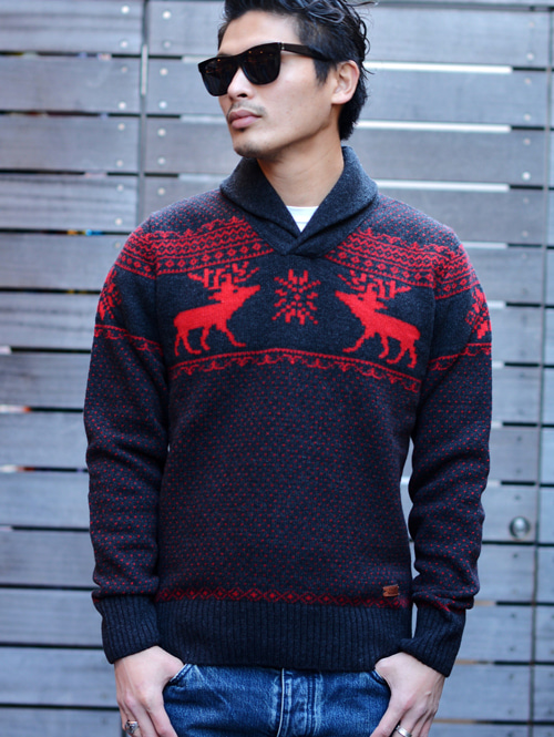 先ずはFranklin Marshallのトナカイ柄のショールニット