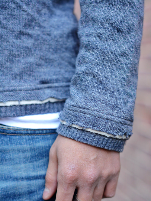 袖口と裾はこんな感じで切りっぱなしの様なデザインに成っています。